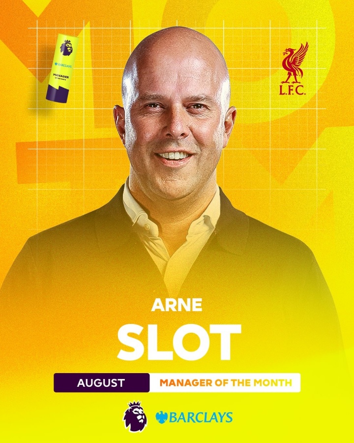 09月12日讯 英超官方公布8月最佳教练奖项得主,利物浦主帅斯洛特成功当选,他击败了另外三名候选人桑德兰主帅布里斯、切尔西主帅马雷斯卡、埃弗顿主帅莫耶斯。
